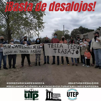 Reiteramos nuestro reclamo de suspensión de desalojo al Poder Judicial y ante el Estado provincial. Exigimos Reglamentación de la Ley de Agricultura Familiar y Campesina.